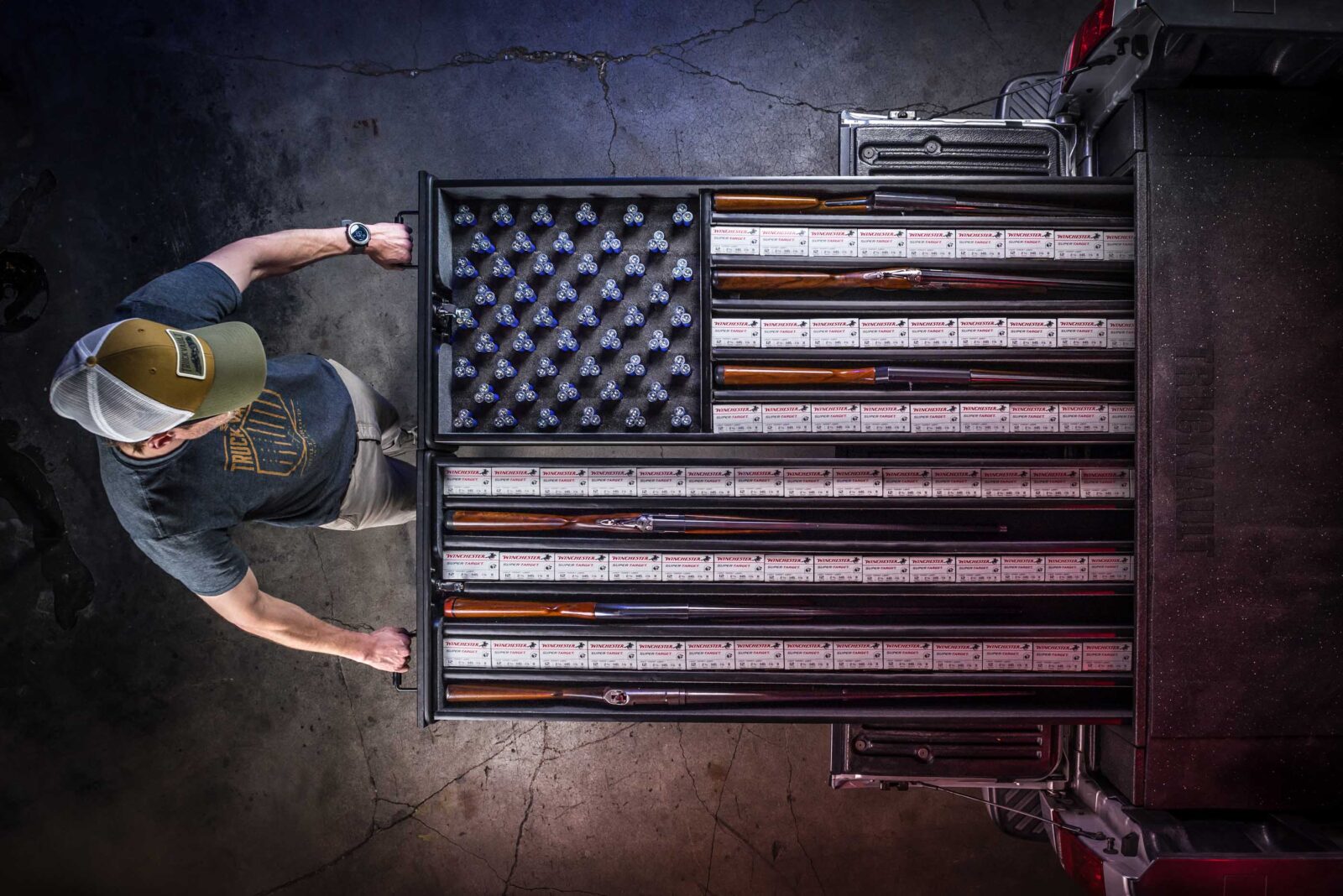 “A couple of decades ago, I built the first TruckVault system to carry my shotguns and other hunting paraphernalia.”